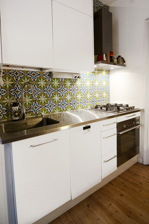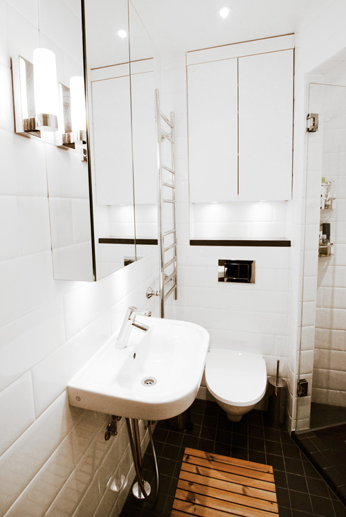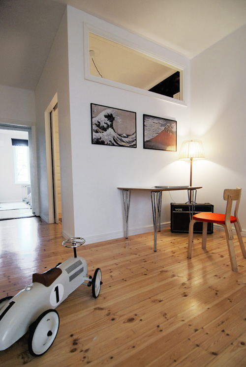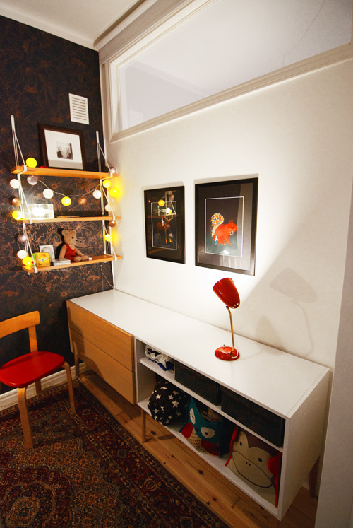 Tähän asuntoon tehtiin suunnitelmat keittiö- ja kylpyhuoneremonttiin. Linjasaneerauksen yhteydessä uusittiin asunnon kylpyhuone kokonaan sekä keittiö osittain. Kylpyhuonetila suunniteltiin alusta asti. Haasteena oli saada sovitettua pieneen tilaan kaikki tarvittavat toiminnot mahdollisimman toimivasti ja kauniisti. Kylpyhuoneeseen suunniteltiin myös laatoitukset, sähköt, valaistus sekä tehtiin kalustevalinnat. Keittiössä uusittiin välitilan laatoitus, osa kaapeista sekä tiskipöytä. Asuntoon tehtiin myös värisuunnitelma. Olohuoneesta erotettiin uusilla väliseinillä lastenhuone, johon suunniteltiin seinien paikat sisäikkunoineen ja liukuovineen.
