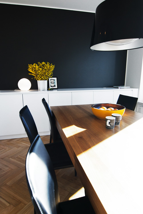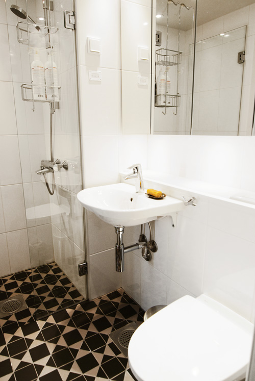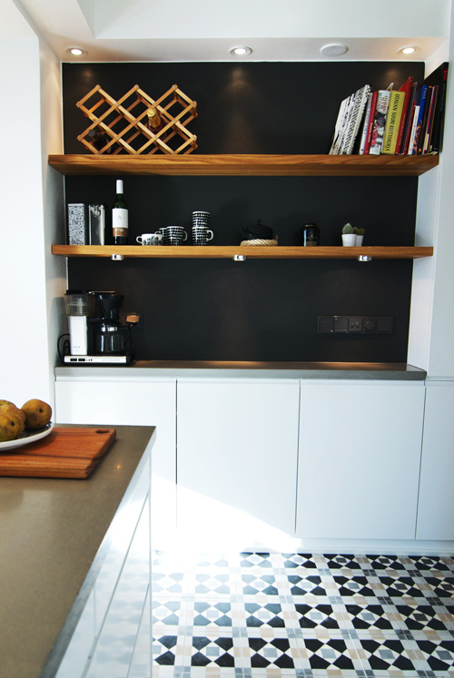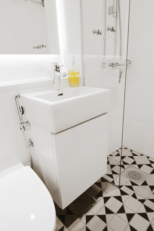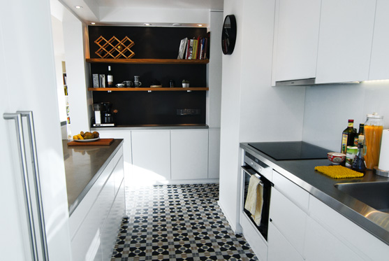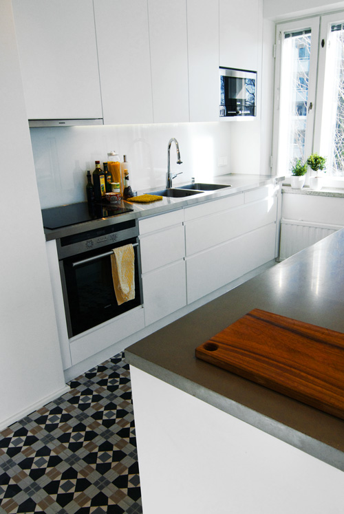 Asunnon kylpyhuone- ja wc-tiloihin sekä keittiöön tehtiin täysremontti linjasaneerauksen yhteydessä. Samalla olohuoneen vanha parketti kunnostettiin ja muihin tiloihin asennettiin uusi parketti. Keittiö avartui ja sai lisää valoa, kun kantavaan seinään tehtiin aukko - samalla keittiö muuttui enemmän samaksi tilaksi ruokailutilan kanssa. Uudessa keittiössä säilytystila hyödynnettiin parhaalla mahdollisella tavalla teettämällä kaikki kalusteet mittatilauksena puusepällä. Puusepältä tilattiin myös säilytyskaluste ruokailutilan päätyyn. Kylpyhuoneeseen ja wc-tilaan suunniteltiin yksilölliset kuviolaattalattiat, keittiössä käytettiin marokkolaisia laattoja. Wc:tä laajennettiin ja sinne lisättiin suihku helpottamaan lasten vaatehuoltoa.