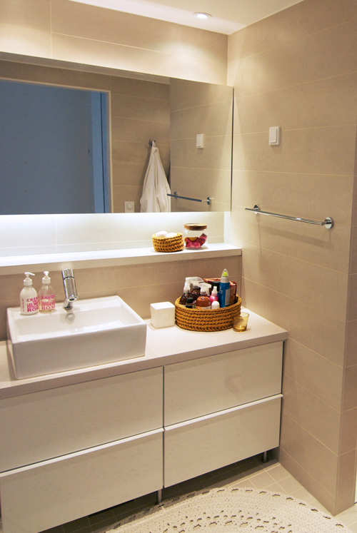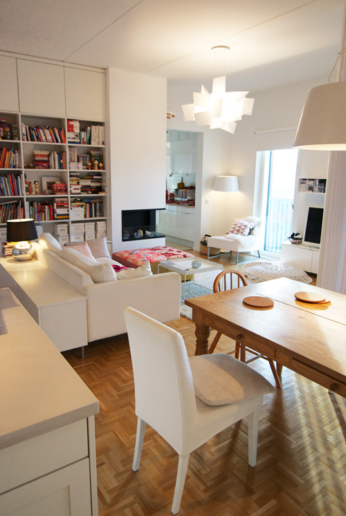 Asuntoon tehtiin rakennusaikana useita väliseinämuutoksia ja kaikkien huoneiden pohjat sekä alakattokotelot suunniteltiin kokonaan uudestaan. Suurimmat muutokset tehtiin keittiö- ja kylpyhuonetiloissa, joissa tilat suunniteltiin alusta asti uusiksi, valittiin laatat ja kalusteet sekä tehtiin sähkösuunnitelmat. Keittiöön ja olohuoneeseen suunniteltiin kiintokalusteita, jotka teetettiin puusepällä mittojen mukaan täydentämään olemassa olevia kalusteita. Väliovet korvattiin mittojen mukaan tehdyillä liukuovilla. Asuntoon tehtiin värisuunnitelma ja valittiin lattiamateriaali. Verhoja ja mattoja teetettiin tiloihin sopiviksi. Kaikkiin huoneisiin tehtiin uudet sähkö- ja valaistussuunnitelmat.